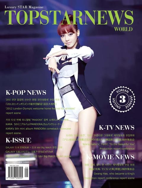 9월호는 더욱 성숙해진 모습으로 1년 만의 국내 컴백을 마친 카라(KARA)를 9월호 프론트 커버 뉴스로 선정했다.