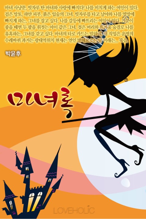 마녀 사냥꾼, 빗자루 탄 마녀와 사랑에 빠지다! 나를 미치게 하는 여인이 있다. 검은 망토, 하얀 피부, 붉은 입술의 그녀. 빗자루를 타고 날아와 나를 열망에 빠지게 하는, 그녀를 잡고 싶다. 나를 갈등에 빠뜨리는 여인이 있다. 기분이 좋을 때면 두 팔을 휘젓는 아이 같은 그녀, 젖은 머리와 뜨거움 숨결로 나를 유혹하는, 그녀를 갖고 싶다. 마녀의 타로 카드는 말하네. 내 직업은 운명의 수레바퀴 과거는 광대역위치 현재는 연인 방해요소는 달 미래는... 죽음.