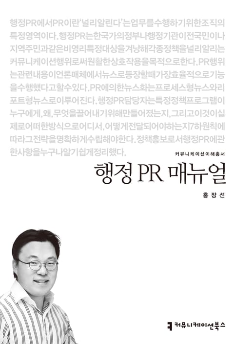 행정 PR에서 PR이란 ‘널리 알린다’는 업무를 수행하기 위한 조직의 특정 영역이다. 또 행정 PR는 한 국가의 정부나 행정기관이 전 국민이나 지역 주민과 같은 비영리 특정 대상을 겨냥해 각종 정책을 널리 알리는 커뮤니케이션 행위로써 원활한 상호작용을 목적으로 한다. 이 PR 행위는 관련 내용이 언론 매체에서 뉴스로 등장할 때 가장 효율적으로 기능을 수행했다고 할 수 있는데, PR에 의한 뉴스화는 프로세스형 뉴스와 리포트형 뉴스로 이루어진다. 이를 위해 행정 PR 담당자는 특정 정책 프로그램이 누구에게, 왜, 무엇을 끌어내기 위해 만들어졌는지, 그리고 이것이 실제로 어떠한 방식으로 어디서, 어떻게 전달되어야 하는지 7하 원칙에 따라 그 전략을 명확하게 수립해야 한다. 현장 실무자가 즉시 활용할 수 있도록 정책 홍보로서 행정 PR에 관한 사항을 누구나 알기 쉽게 정리했다.