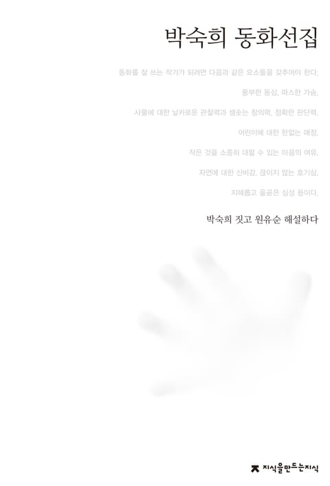 지식을만드는지식 ‘한국동화문학선집’은 대한민국을 대표하는 100명의 동화작가와 시공을 초월해 명작으로 살아남을 그들의 대표작 선집이다. 지식을만드는지식과 한국아동문학연구센터 공동 기획으로 7인의 기획위원이 작가를 선정했다. 작가가 직접 자신의 대표작을 고르고 자기소개를 썼다. 평론가의 수준 높은 작품 해설이 수록됐다. 깊은 시선으로 그려진 작가 초상화가 곁들여졌다. 삽화를 없애고 텍스트만 제시, 전 연령층이 즐기는 동심의 문학이라는 동화의 본질을 추구했다. 작고 작가의 선집은 편저자가 작품을 선정하고 작가 소개와 해설을 집필했으며, 초판본의 표기를 살렸다.