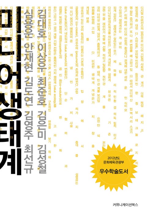 세계 유수의 미디어 기업들이 협조해 개방적인 플랫폼과 콘텐츠 장터, 즉 미디어 생태계를 만들어가고 있다. 요즘 미디어 업계의 화두는 상생을 통한 동반 성장이다. 미디어 생태계에 대한 논의가 본격화될 하반기에 맞춰 전문가들이 모여 『미디어 생태계』를 펴냈다. 변화하는 미디어 생태계의 개념과 특성을 한 눈에 살펴볼 수 있는 책이다.