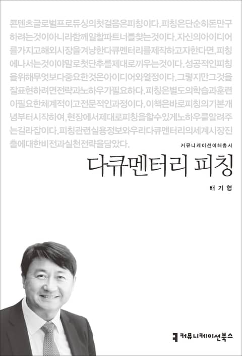 콘텐츠 글로벌 프로듀싱의 첫걸음은 피칭이다. 피칭은 단순히 돈만 구하려는 것이 아니라 함께 일할 파트너를 찾는 것이다. 자신의 아이디어를 가지고 해외 시장을 겨냥한 다큐멘터리를 제작하고자 한다면, 피칭에 나서는 것이야말로 첫 단추를 제대로 끼우는 것이다. 성공적인 피칭을 위해 무엇보다 중요한 것은 아이디어와 열정이다. 그렇지만 그것을 잘 표현하려면 전략과 노하우가 필요하다. 피칭은 별도의 학습과 훈련이 필요한 체계적이고 전문적인 과정이다. 이 책은 바로 피칭의 기본 개념부터 시작하여, 현장에서 제대로 피칭을 할 수 있게 노하우를 알려 주는 길라잡이다. 피칭 관련 실용 정보와 우리 다큐멘터리의 세계 시장 진출에 대한 비전과 실천 전략을 담았다.