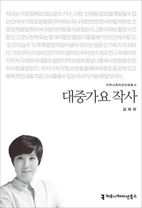작사는 가장 임팩트 있는 글쓰기다. 사랑, 인생 등 결코 짧게 말할 수 없는 긴 이야기와 감정을 음악이라는 하나의 탄탄한 정서와 함께한 순간 공감력을 발휘하며 사람의 마음을 사로잡는다. 3분이라는 짧은 시간 동안 그것도 반복되는 몇 개의 짧은 멜로디를 통해 ‘10년간의 사랑’도 ‘순간의 실수’도 부족함 없이 담아낼 수 있다는 점은 신기하기까지 하다. 가요부터 드라마 OST까지, 발라드부터 댄스 퍼포먼스 곡에 이르기까지 시대와 세대를 초월한 지역과 장르를 넘나들며 사랑받을 모든 작사법을 담았다. 작사가의 작업 과정을 통해 여러분도 공감력 있고 매력적인 대중가요 가사를 쓸 수 있는 작사가 가능해질 것이다.
