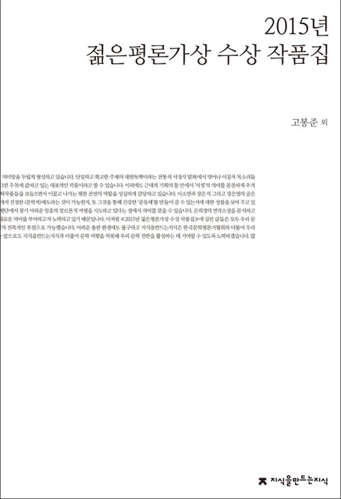 2015년 젊은평론가상 수상 작품집 상세페이지