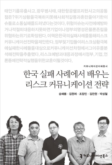태안 기름 유출 사고, 광우병 사태, 대한항공 램프 리턴 사고의 공통점은? 위기 상황을 극복하지 못해 사회적 갈등과 혼란을 야기한 이슈들로 소통 실패를 드러냈다는 것이다. 위험 이슈는 사전에 예방하거나 적절히 대응하지 못하면 기업이나 정부의 명성은 물론 존립을 위협하는 위기로 확장된다. 이 책은 한국의 실패 사례를 통해 리스크 커뮤니케이션 전략을 제안한다. 정부 및 기업들이 리스크 상황 극복에 실패한 사례들을 대상으로 커뮤니케이션 차원에서 그 이유를 분석해 전략을 추출했다. 리스크 예방과 대응 과정에서 정부, 기업, 언론 등에 전략적 실행을 위한 교훈이 될 것이다.