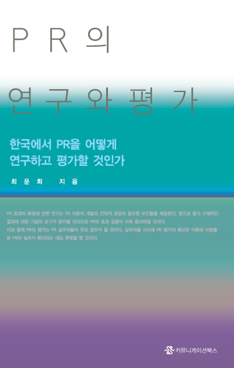 최근 들어 PR의 효과 측정과 평가의 중요성이 강조되고 있지만 한국사회의 문화와 조직의 특성이 반영된 연구는 미미했다. 책은 한국 PR의 특성을 이해하고 이론을 정립하기 위해 질적연구 방법을 중심으로 양적연구 방법을 함께 활용하는 방법을 소개한다. 또한 PR의 효과 측정과 평가를 위한 모형 및 그 기법에 관해서도 논한다.