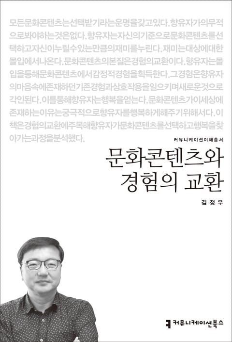 모든 문화콘텐츠는 선택받기라는 운명을 갖고 있다. 향유자가 의무적으로 봐야 하는 것은 없다. 향유자는 자신의 기준으로 문화콘텐츠를 선택하고, 재미를 누린다. 재미는 대상에 대한 몰입에서 나온다. 향유자는 몰입을 통해 문화콘텐츠에서 감정적 경험을 획득한다. 그 경험은 향유자의 마음속에 존재하던 기존 경험과 상호작용을 일으키며 새로운 것으로 각인된다. 이를 통해 향유자는 행복감을 얻는다. 문화콘텐츠는 궁극적으로 향유자를 행복하게 해 주기 위해 존재한다. 이 책은 경험의 교환에 주목해 향유자가 문화콘텐츠를 선택하고 행복을 찾아가는 과정을 분석했다.