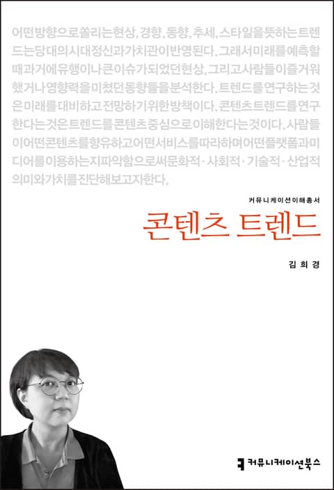 콘텐츠 트렌드를 연구한다는 것은 트렌드를 콘텐츠 중심으로 이해한다는 것이다. 사람들이 어떤 콘텐츠를 향유하고 어떤 서비스를 따라하는지, 주로 이용하는 플랫폼과 미디어는 무엇인지 등 콘텐츠 트렌드의 변화 양상을 파악함으로써 문화적·사회적·기술적·산업적 의미와 가치를 진단할 수 있다. 트렌드 분석이 왜 중요하고 필요한지, 트렌드 변화에 영향을 미치는 요인은 무엇인지 알아본다. 트렌드에는 어떤 특성이 있는지도 파악해 보고 고객 세분화에 따른 트렌드 변화 과정과 메타버스 트렌드, 모빌리티 트렌드, 공유경제 트렌드, 구독경제 트렌드 등 여러 유형의 트렌드에 대해 살펴본다.