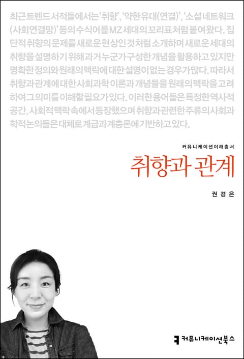 이 책은 취향과 관계에 대한 사회과학 이론과 개념들을 원래의 맥락을 고려하여 그 의미를 파악한다. 베블런의 ‘과시적 소비’, 부르디외 ‘구별짓기’, 유유상종 현상을 설명하는 ‘호모필리(homophily)’ 이론을 살펴보고 ‘옴니보어 가설’과 관련해 어떻게 취향이 특정 사람들과 자신을 구별하고 특정 사람들과는 연결하는 자원으로 활용되는지를 설명한다. 또 이들 미디어 환경 변화 속에서 이 이론들의 적합성 및 함의에 대해 평가한다. 취향의 문제와 관련해 나와 다른 사람, 나와 비슷한 사람은 누구인가라는 질문에 대한 답을 통해 내가 좋아하는, 혹은 소비하는 것들과 내 주변 사람들의 상관관계를 생각해 볼 수 있을 것이다.