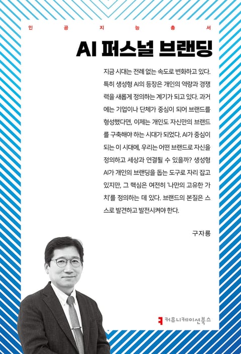 생성형 AI 시대, 개인이 어떻게 자신을 하나의 브랜드로 구축할 수 있을지를 체계적으로 안내하는 실천적 가이드다. 이 책은 콘텐츠 생성, 데이터 분석, 글로벌 소통 등 AI 기술이 개인 브랜딩에 어떤 도구가 되는지를 다루는 동시에, 브랜딩의 본질이 ‘자신만의 고유한 가치 발견’에 있음을 강조한다.