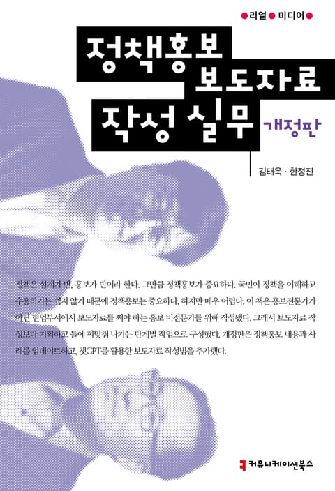 이 책은 정책 보도자료 기획과 작성을 전략적 방법과 예시를 들어 설명했다. 일부는 직접 실습도 할 수 있게 했다. 홍보팀에서의 실무 경험과 강의·컨설팅 등 32년간의 노하우를 쌓아 온 현직 홍보강사 김태욱, 그리고 신문기자와 정부부처 홍보 30년 경력의 현직 홍보담당관 한정진이 함께 썼다. 현장 실무 교육 기법과 실무 사례와 예시가 풍부해 현장 경험이 부족한 초보자에게 특히 유용하다.