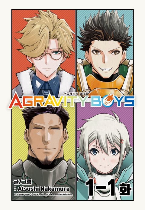 지구가 멸망하면서 전원 남자로만 구성된 탐사대의 사가, 게랄트, 바바, 크리스 4명은 인류 존속의 위기에 직면한다!! 하지만 갑자기 나타난 수수께끼의 생명체로부터 단 1명의 성별을 반전시킬 수 있다는 비밀의 약을 전해받는데...!? 인류의 마지막 희망이 되어 헤쳐나가는 우주 서바이벌! 신감각 무중력 코미디 개막!! AGRAVITY BOYS © 2019 by Atsushi Nakamura/SHUEISHA Inc.