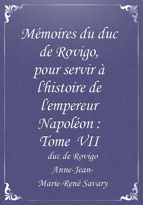 Mémoires du duc de Rovigo, pour servir à l'histoire de l'empereur Napoléon : Tome VII 상세페이지