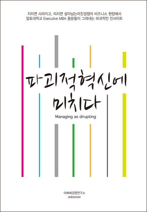 이 책은 '파괴적 혁신'이라는 주제에 대하여 지난 1년간 매월 세미나를 진행하여 도출된 인사이트들을 정리하여 놓은 경영전략에 관한 도서이다. 알토대학교 MBA동문으로 구성된 세미나멤버들은 서로 다른 업종에서 근무하고 있는 실무전문가로서, 파괴적인 혁신에 대한 다양한 관점에서의 인사이트를 제시하고 있다. 혁신과 관련된 업무를 담당하는 기업인들과, 관련분야에서 근무하고자 하는 학생들에게 실무적인 도움을 줄 것이다. 주요내용은 파괴적 혁신의 FLOW에 따라 아래의 6개 테마로 나누어 설명되고 있다.