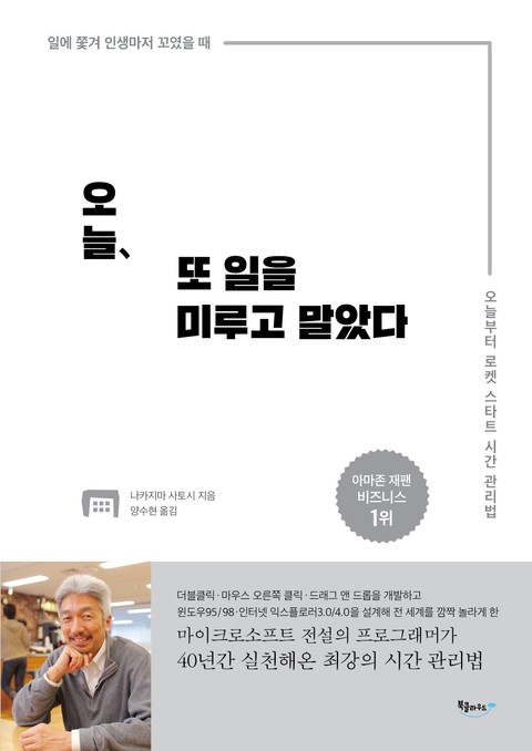 저자 나카지마 사토시는 우리에게 무척 익숙한 ‘더블클릭’ ‘마우스 오른쪽 클릭’ ‘드래그 앤 드롭’을 개발한 프로그래머다. 그는 전 세계적 히트 상품 ‘윈도우95’와 ‘윈도우98’, ‘인터넷 익스플로러3.0’과 ‘인터넷 익스플로러4.0’을 설계하면서 마이크로소프트 전설의 프로그래머로 이름을 높였다. 밤샘과 초과근무로 악명 높은 IT업계에서 그가 세상을 뒤바꾼 발명을 할 수 있었던 비결은 무엇일까? 그것은 ‘시간을 지배하는 힘’이다. 그는 자신이 일찍 재능을 꽃피울 수 있었던 궁극의 비결을 ‘로켓 스타트 시간 관리법’이라고 이름 짓고, 40년간의 핵심 노하우를 한 권의 책에 담았다. 따라 하기만 하면 누구나 빠른 속도로 일을 끝낼 수 있는 것은 물론, 평범한 사람도 일류 인재를 뛰어넘을 수 있다.