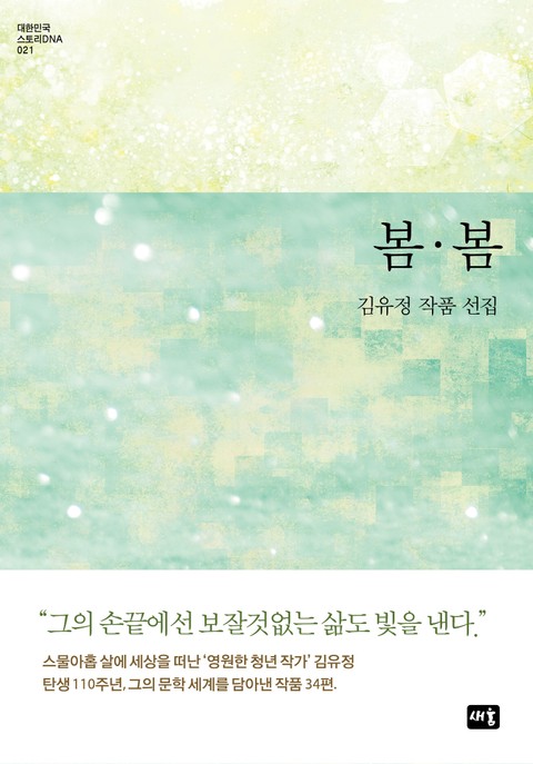 이번에 선보이는 김유정 작품 선집 <봄.봄>은 김유정 탄생 110주년을 맞아 타계 81주기가 되는 3월 29일 출간되었다. 김유정이 남긴 소설 24편과 콩트 1편을 발표 연대순으로 한데 모아 엮었다. 아울러 수필 9편도 함께 담았다.