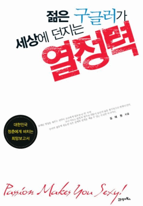 불확실한 미래 때문에 힘들어하는 대한민국 청춘들에게 전하는 희망보고서 『젊은 구글러가 세상에 던지는 열정력』. 이 책은 ‘움직이는 열정’과 ‘새로운 관점’을 찾으려 노력한다면, 자신의 삶을 획기적으로 변화시킬 수 있다고 말한다. 누구보다 치열하게, ‘움직이는 열정’을 실천하여, 당당히 구글에 입사할 수 있었던 저자 김태원의 이야기를 통해 설명한다.