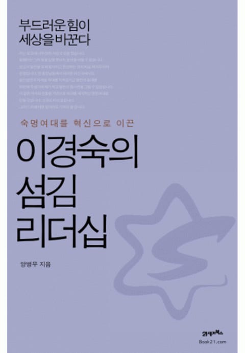 <숙명여대를 혁신으로 이끈 이경숙의 섬김 리더십>은 14년 전만 해도 아주 평범한 여자대학이었던 숙명여대를 디지털대학의 선두주자, 학생들의 고객만족도 1위 대학, 대학행정혁신의 메카로 만들어 놓은 과정을 이경숙 총장의 리더십을 토대로 일목요연하게 묶은 책이다. 그리고 그 과정에서 발휘된 이경숙 총장의 '섬김 리더십'을 소개하며, 사람과 조직이 어떻게 움직이고 리더의 참된 조건은 무엇인지를 생각하도록 한다.