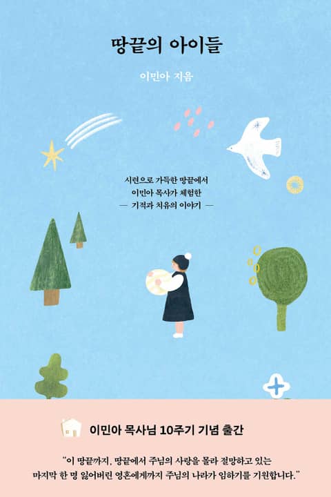 이민아 목사의 10주기를 맞아 『땅끝의 아이들』 개정판이 출간되었다. 2012년 세상을 떠날 때까지 이혼과 암 투병, 큰아이의 죽음 등 시련과 인내로 가득한 시간을 보내면서도, 그는 “이어령의 딸”, “캘리포니아주 검사”, “변호사” 등 자신이 가진 모든 것을 내려놓고 오직 땅끝 아이들의 엄마로 자신을 사역을 감당하는 데 힘썼다. 이 책에는 하나님을 영접한 이후 이민아 목사에게 일어난 여러 가지 시련과 시험, 그리고 그것을 극복하며 보고 들은 놀라운 영적 체험과 깨달음이 담겨 있다. 그는 이 책에서 한때 자신도 벼랑으로 내몰려 땅끝에 선 아이들과 같았음을 고백하며, 자신과 같은 처지에 있는 독자들에게 따뜻한 위로와 희망을 선물한다.