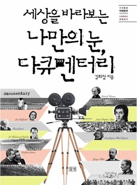 이 책은 우리 인간의 확장된 눈 역할을 하고 있는 ‘카메라’와 그것을 이용해서 만들어지는 영화, 그중에서 ‘다큐멘터리’라는 장르가 갖고 있는 시각적·역사적·철학적 특징들을 살펴보면서 ‘다큐멘터리 감독’이라는 직업의 세계를 탐색하는 책입니다. 또한 그 과정에서 다큐멘터리를 감상하거나 제작할 때 함께 생각해보았으면 하는 문제들, 다큐멘터리나 극영화의 서사구조를 만들어나갈 때 활용되는 내레이션에 대해 알아보고, 국내외 다양한 다큐멘터리 영화의 작가 또는 감독들이 세상을 어떤 눈으로 바라보고 있는가를 여러분과 함께 살펴보고자 합니다. 1강에서는 사람의 눈 역할을 하는 카메라 이야기를 카메라의 발명과 영화의 시작에 연관시켜 설명합니다. 사진의 발명과 최초의 동영상, 그리고 오늘날의 포토샵 작업에 해당하는 일화들이 여러분의 눈과 귀를 즐겁게 해줄 것입니다. 또 여러분이 즐겨보는 극영화와 다큐멘터리의 차이점을 탐색하면서 다큐멘터리의 주관성에 대해서도 생각해봅니다. 2강은 저자의 작품을 가지고 기획부터 제작에 이르는 과정을 보여주는 일반적인 다큐멘터리 제작 이야기입니다. 촬영의 단위인 영상 언어들, 촬영할 때 알아두면 좋은 것들, 그리고 편집에 대해 알아봅니다. 여러분이 실제 다큐멘터리를 만들 때 매우 요긴하게 쓰일 강의입니다. 3강은 다양한 내레이션에 대한 이야기입니다. 다큐멘터리뿐만 아니라 극영화에서 내레이션이 어떤 식으로 쓰이는지, 어떤 주제에 어떤 내레이션을 사용했는지 여러 가지 영화를 통해 살핍니다. 4강은 우리가 다큐멘터리를 만들거나 감상할 때 눈여겨보아야 하는 점들을 일깨워주는 장입니다. 자료화면의 재연 기능이라든지 다큐멘터리 속 인물의 초상권, 그리고 표현의 자유 등에 대한 진지한 이야기가 곁들여집니다. 5강은 이 책을 마무리하면서 저자가 여러분에게 ‘함께 보기’를 제안하는 다양한 영화 소개입니다. 특색 있고 의미 있는 다큐멘터리 영화를 만든 거장들의 삶을 소개하는 글도 매우 유익합니다. 마지막 팁은 부록입니다. 이 책을 읽고 다큐멘터리 만들기에 관심을 갖게 되었을 때 도움을 받을 수 있는 국내 미디어센터와 각종 다큐멘터리 영화제에 대한 안내 글을 실었습니다. 이 한 권의 책이 자기 앞에 놓인 인생과 현실을 고민하는 여러분에게 많은 기쁨과 도움이 되기를 바랍니다.