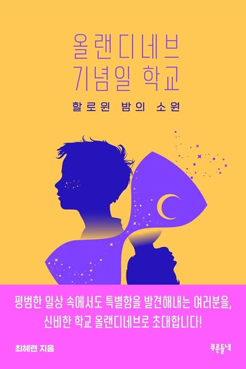 평범한 일상 속에서도 특별함을 발견해내는 여러분을 신비한 기념일 학교 올랜디네브로 초대합니다! 특별한 눈과 지혜를 가진 아이들이 있다. 먼지 쌓인 오래된 가게에서 아무도 보지 못하던 신기한 물건을 발견한다거나, 카페에서 남들은 절대 시키지 않는 이상하고 독특한 음료를 주문한다거나…. 그들은 모두 신비한 학교 올랜디네브로 초대된다. 올랜디네브에는 다양한 학과가 있다. 온통 로맨티스트들로 가득한 ‘밸런타인 학과’, 구운 칠면조와 녹인 버터 냄새가 가실 날 없다는 ‘추수감사절 학과’, 공부에 남다른 열정을 가진 모범생들만 모인다는 ‘탄생일 학과’, 두 말 할 나위 없이 최고의 기념일이라 여겨지는 ‘크리스마스 학과’ 등등…. 학생들은 각자 원하는 학과에 입학한다. 그리고 모든 사람의 일상 속에 이따금 선물처럼 찾아오는 기념일을 특별하고 즐거운 시간으로 만들어주는 법을 배운다! ‘휴’와 ‘데이브’는 올랜디네브의 수많은 학과 중에서도 끝내주는 장난꾸러기들만 선택한다는 ‘할로윈 학과’를 선택한다. 재미있는 장난 거리를 잔뜩 찾아내 집에 있는 동생들에게 자랑하고 싶었는데, 각종 사건 사고로 휴의 학교생활은 시작부터 예사롭지 않다. 게다가 영원히 함께하자고 약속한 절친 데이브와의 관계마저 삐걱거린다. 휴는 과연 신나는 학교생활과 데이브와의 우정을 지켜낼 수 있을까? 들녘의 청소년 브랜드 푸른들녘에서 처음으로 선보이는 청소년소설이다. 촘촘히 구성한 판타지 세계관과 손에 잡힐 듯 생생한 묘사가 흥미롭다. 수많은 공무원이 각종 기념일 전담 부서에 소속되어 일하는 ‘올랜디네브 정부’와 ‘부활절 토끼 노동조합’ ‘유령 인권 위원회’ 등 우리가 살아가는 현실과 비슷하면서도 다른 독특한 배경 설정이 몰입감을 더한다. 특히 올랜디네브 기념일 학교의 신기한 수업들은 독자의 상상력과 창의력을 자극한다. 소설은 주인공 휴와 그의 친구 데이브가 경험하는 갈등과 위기를 통해 독자로 하여금 ‘삶에서 정말 중요한 것은 무엇인가’를 생각하게 한다. 매일 반복되는 일상은 언뜻 단조로워 보이고, 우리는 그것을 따분히 여기며 특별함을 찾아 헤매기 쉽다. 하지만 어느 순간 일상이 위기를 맞으면, 비로소 그 소중함을 깨닫게 된다. 소설은 반드시 특별한 일이 일어나지 않아도 우리의 일상이 소중한 까닭은 진정한 친구와 참된 우정을 나눌 수 있기 때문이라고 역설한다. 그리고 지금 곁에 있는 친구를 소중히 여기며 매일을 기쁨으로 채워가라는 메시지를 전한다.