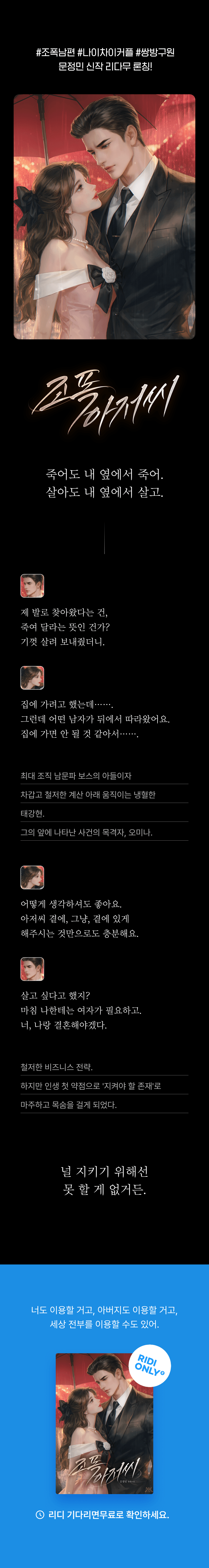 • 여주가 갓스물에 순진한데 나이차 조폭남주가 홀랑 잡아먹는 내용이라 흥미진진해요