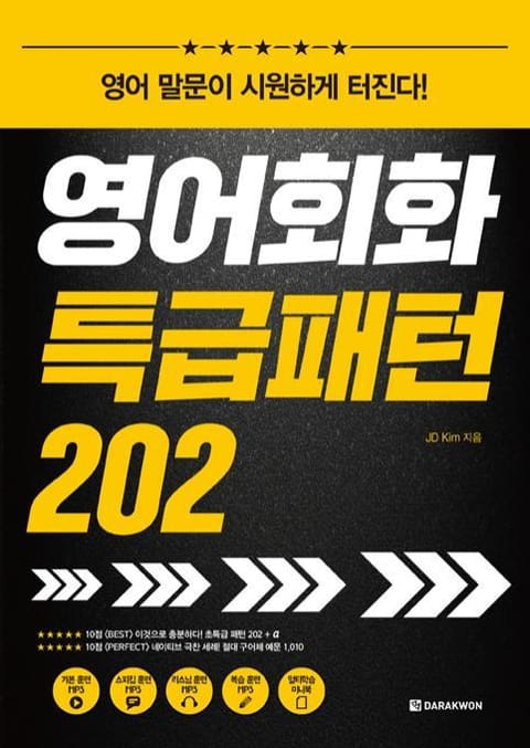 문법이나 단어 걱정 없이 지금 당장 영어회화를 시작하는 가장 좋은 방법은 바로 패턴! 패턴 전문가인 저자 JD Kim과 최강 네이티브 감수단이 협업하여 영어회화에 가장 필요한 종자 패턴 202개를 엄선했다. 이렇게 뽑은 ‘특급’ 패턴에 네이티브가 극찬한 절대 구어체 표현을 붙여 통째로 외울 가치가 있는 예문 1,010개를 수록했다. 또 실제 대화로 암기를 점검하는 복습 훈련을 통해 실전에 강해질 수 있도록 고려했다.