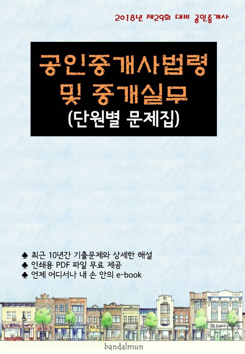 반달문 출판사는 전자책 전문 출판사입니다. 2012년부터 공인중개사 수험서를 전자책 형태로 꾸준하게 출간하고 있습니다. 전자책 형태의 수험서는 이제 시작 단계에 있으나 내용이나 가격면에서 수험생들에게 최고의 신뢰와 만족을 드리기 위해 노력하고 있습니다. 매년 개정판을 내고 있으니 최신판인지 여부를 확인하고 구입하시기 바랍니다.