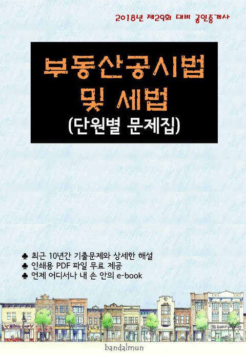 반달문 출판사는 전자책 전문 출판사입니다. 2012년부터 공인중개사 수험서를 전자책 형태로 꾸준하게 출간하고 있습니다. 전자책 형태의 수험서는 이제 시작 단계에 있으나 내용이나 가격면에서 수험생들에게 최고의 신뢰와 만족을 드리기 위해 노력하고 있습니다. 매년 개정판을 내고 있으니 최신판인지 여부를 확인하고 구입하시기 바랍니다.