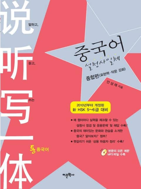 『중국어 설청사일체 종합편』은 2010년부터 개정된 신 HSK 5~6급 대비서다. 매 챕터마다 실력을 체크할 수 있는 '설청사 점검 및 응용문제' 및 해답이 수록되어 있고, 중국의 재미있는 문화와 관습을 소개한 '중국? 알아보자!' 코너가 있다. 더불어 헷갈리기 쉬운 '상용 파음자 정리'도 별도로 정리되어 있다.