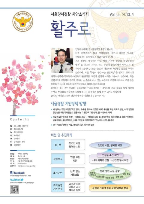 서울강서경찰에서는 국민의 눈높이에 맞는 유용한 치안정보와 각종 미담사례 등을 담은 치안소식지 '활주로'를 발간해오고 있습니다.