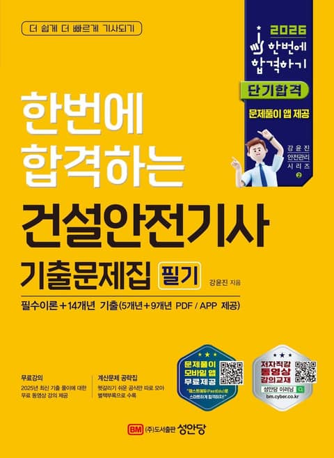 특히 2025년도에 시행된 최근 기출문제 풀이에 대한 “동영상 강의를 무료로 제공”하며, 모든 문제에는 정확한 정답과 상세한 해설을 달아 부족한 이론을 보충하고 실전감각을 익히며 혼자서 공부하기에도 무리가 없도록 구성하였다.