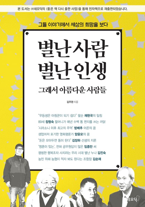 이 책은 2016년 4월 종이책으로 처음 출간되어 많은 독자에게 따뜻한 감동을 전했으나, 절판으로 더 이상 만나기 어려웠습니다. 하지만 이번에 네오딕의 ‘좋은 책 다시 출판’ 프로젝트를 통해 전자책으로 새롭게 선보이게 되었습니다.