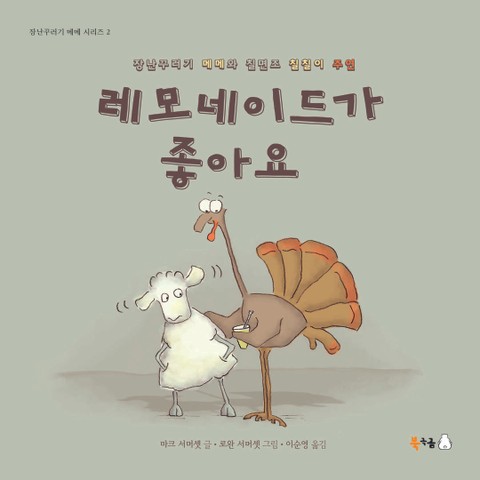 장난꾸러기 어린 양 메메와 개구쟁이 친구 칠면조 칠칠이 이야기 「장난꾸러기 메메 시리즈」 제2권 『레모네이드가 좋아요』. 아이들의 눈높이에 맞는 장난과 유머를 통해 커다란 웃음을 선사하고 책읽기의 즐거움을 알려주는 그림책입니다. 일상생활에 흔히 쓰이는 말을 따라 하고 반복하는 형식으로 구성되어 있는 이야기는 아이들이 쉽고 재미있게 읽을 수 있습니다.