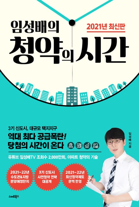 청약가점이 낮은 사람도, 무자녀 신혼부부도, 유주택자도 당첨을 노려볼 수 있는 다양한 청약의 기술을 알려준다. 특히 3기 신도시 및 대규모 택지지구 중에서 주목해야 할 지역 및 청약전략을 소개한다. 2021년 최신 청약/부동산 정책을 반영했으며, 권말 부록으로 〈2021~22년 수도권&지방 분양예정단지〉, 〈3기 신도시 분석 및 청약전략〉도 수록했다. 저자 임성배는 조회수 2,000만회의 유튜브 ‘임성배TV-부동산재테크’, 클래스101의 〈분양물량이 몰려온다! 평범한 사람들의 재테크, 청약 준비하기〉 온라인 강좌로 수강생 만족도 98%를 기록하고 있는 명실공히 부동산/청약 최고의 전문가이다.