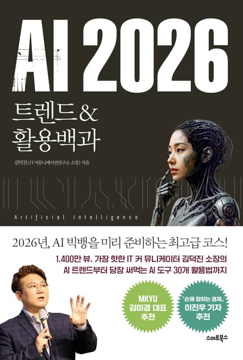 1,400만 뷰 화제의 영상, 16주 연속 종합 베스트셀러 김덕진 소장의 최신작 『AI 2026』(트렌드&활용백과)가 나왔다. 절대 놓쳐서는 안 될 2026년 AI 핫 트렌드와 활용법. 10여 년 동안 IT 트렌드의 최전선에서 대중들과 함께 호흡해온 김덕진 IT커뮤니케이션연구소장이 오픈AI·앤트로픽·구글·xAI 등 빅테크들의 최신 전략을 분석하고, 2026년 AI 핫 트렌드를 소개한다. 또한 지난 3년여 간 수천 회의 다양한 강의현장에서 만난 5만여 명 사용자들의 요구를 반영하여, 우리 삶과 일에서 활용도가 높은 AI 도구 30개를 뽑아 활용법도 소개한다.