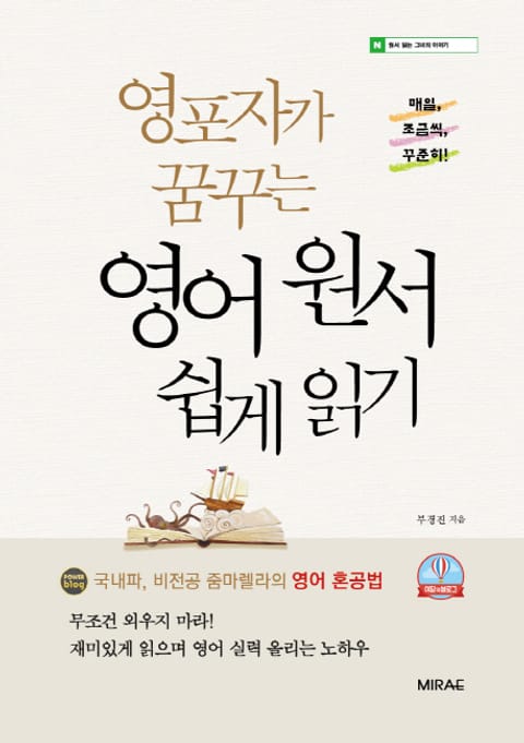 이 책은 어학연수, 해외 유학, 해외 체류 경험 없이도 영어는 잘할 수 있고, 영어 원서도 읽을 수 있다는 것을 함께 나누고자 한다. 저자는 아이를 키우고 직장에 다니며 모국어책과 영어책을 읽으면서 자신감을 가지게 되었고, 독서에서 얻은 감동으로 행복한 삶을 살아가고 있음을 책을 통해 전달하고 있다.