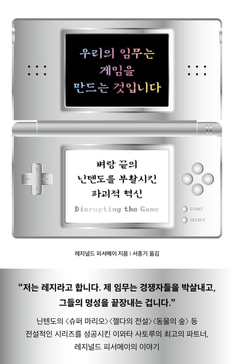 이 책의 저자, 레지널드 피서메이는 브롱스의 슬럼가에서 자랐지만 굳은 의지와 부단한 노력을 통해 닌텐도의 정상까지 오를 수 있었다. 레지널드 피서메이는 파격적인 사고를 통해, 비즈니스 세계에서 우위를 점하고 직업적 성취를 위해 필요한 끈기, 인내, 회복력을 익혔다. 또한 그는 자신에 대한 부정적인 인식을 극복한 것은 물론, 진정으로 행복해질 수 있는 삶의 선택을 정확히 찾아내는 방법도 깨달았고, 이 모든 것을 『우리의 임무는 게임을 만드는 것입니다』에 고스란히 녹여냈다. 이 책을 읽은 이들은 성공을 위해 필요한 용기와 여러 대안을 찾는 법, 경력, 팀, 회사에 관한 생생한 통찰력을 찾는 법, 그리고 끊임없이 호기심을 유지하고 일할 수 있는 법을 알게 될 것이다.