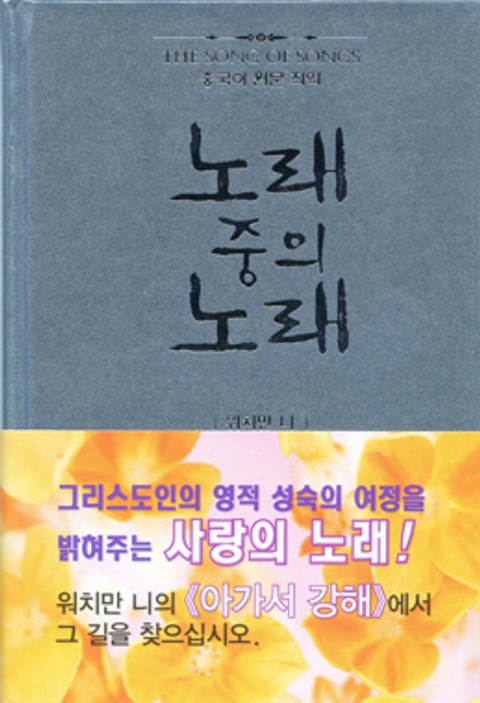 이 책은 1935년 워치만 니 형제님이 몇몇 동역자들과 아가서를 연구하였는데, 그 요점을 받아 적은 기록이다. 시대적 필요 때문에 1945년에 처음으로 충칭(重慶)에서 발간되었고, 1948년에 칭다오(靑島)에서 두번째로 발간되었으며, 이번에 타이베이에서 다시 출판한다. 그러나 이 내용은 전하신 분과 대조하여 수정한 것이 아님을 밝혀 둔다.