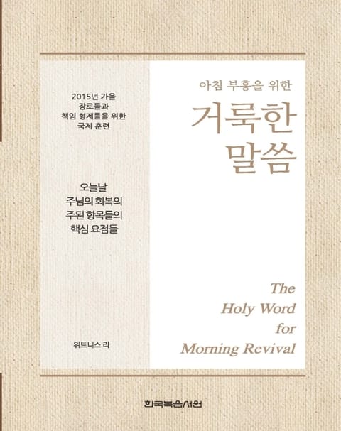 1. 이 책은 믿는 이들이 말씀 안에 계신 주님과 함께하는 매일의 아침 부흥 시간을 발전시키고, '오늘날 주님의 회복의 주된 항목들의 핵심 요점들'이라는 주제로 2015년 10월 1를부터 10월 3일까지 브라질, 아구아스 데 린도이아 시에서 열린 장로들과 책임 형제들을 위한 국제 훈련 집회 내용을 복습할 수 있도록 만들어졌습니다. 말씀 안에 계신 주님을 친밀하게 접촉함으로 믿는 이들은 생명과 진리로 조성되며, 그리스도의 몸의 건축을 위해 교회 집회에서 신언할 수 있도록 장비됩니다.