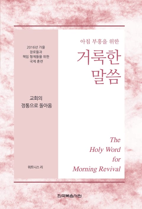 이 책은 믿는 이들이 말씀 안에 계신 주님과 함께하는 매이르이 아침 부흥 시간을 발전시키고, "교회의 정통으로 돌아옴"이라는 주제로 2016년 10월 6일부터 8일까지 호주, 골드코스트 시에서 열린 장로들과 책임 형제들을 위한 국제 훈련 집회 내용을 복습할 수 있도록 만들어졌습니다. 말씀 안에 계신 주님을 친밀하게 접촉함으로 믿는 이들은 생명과 진리로 조성되며, 그리스도의 몸의 건축을 위해 교회 집회에서 신언할 수 있도록 장비됩니다