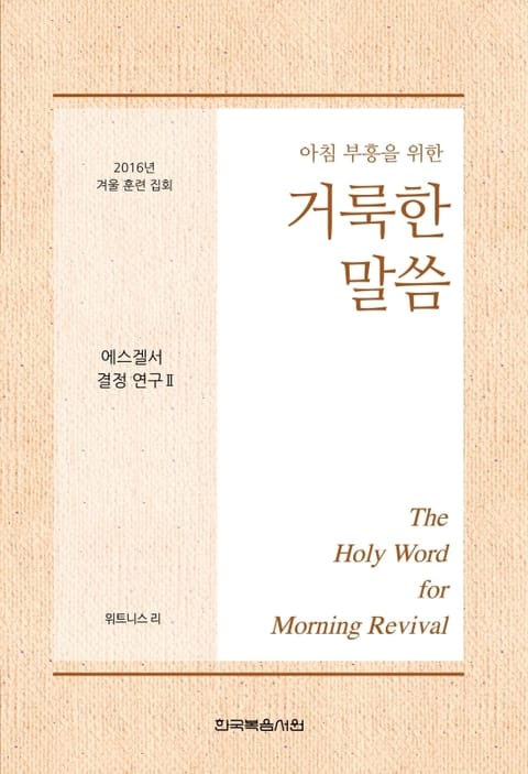 1. 이 책은 믿는 이들이 말씀 안에 계신 주님과 함께하는 매일 아침 부흥 시간을 발전시키고, 2016년 12월 26일부터 12월 31일까지 캘리포니아 주 애너하임 시에서 열린 "에스겔서 결정 연구"에 관한 겨울 훈련 집회 내용을 부분적으로 복습할 수 있도록 만들어졌습니다. 말씀 안에 계신 주님을 친밀하게 접촉함으로 믿는 이들은 생명과 진리로 조성되며, 그리스도의 몸의 건축을 위해 교회 집회에서 신언할 수 있도록 장비됩니다.