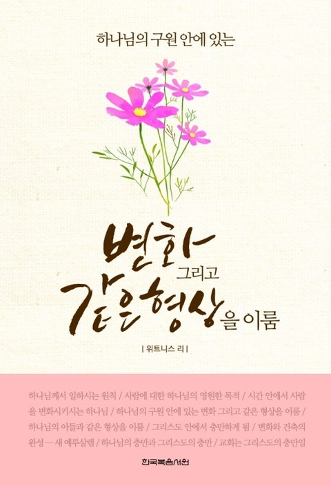 하나님의 구원 안에 있는 변화 그리고 같은 형상을 이룸 - 그분의 임재가 여러분의 어둠 속의 빛이 되고, 여러분이 약하고 침체될 때 여러분을 부축할 것이다. 그분은 여러분에게 친밀하시고, 여러분을 향해 무한량하시다. 그분은 여러분의 모든 것이 되신다 (본문중에서)