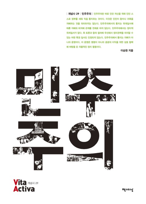 한국 사회와 현대 세계를 이해하는 데 열쇠가 되는 개념들을 뽑아 그 의미와 역사, 실천적 함의를 해설하는 ‘비타 악티바Vita Activa|개념사’ 시리즈의 스물아홉 번째 권 《민주주의》는 이 질문에 대해 고대부터 현대에 이르는 ‘민주주의의 역사’를 기본 줄기로 삼아 민주주의의 정치적 주체로서의 ‘인민/시민’의 의미를 묻고, ‘구성’과 ‘전복’ 사이에서 끊임없이 진동하는 민주주의의 유동성을 강조하며, 제도를 넘은 생활양식으로서의 민주주의와 공동 책임으로서의 ‘연대’의 가치를 성찰함으로써 오늘 우리가 만들어가야 할 민주주의의 상을 이야기한다. 이 책에 따르면 민주주의의 역사는 시민이 누구인가를 정의하는 투쟁의 역사로서 왕과 귀족이 독점했던 정치권력을 부르주아에게로, 노동자에게로, 여성에게로, 모든 인종에게로 조금씩 확대해온 여정이었다. 한국 사회의 민주주의 역시 미군정에 의한 제도 이식으로 철학적 성찰이 생략되고 독재정권이 사회적 합의를 짓밟았지만, 6월항쟁을 비롯한 시민들의 사회적 합의를 통해 헌법을 바꾸고 민주화를 실현해왔다. 이러한 민주주의의 역사는, 주권자인 우리 자신에 따라 앞으로의 민주주의의 역사가 달라질 수 있음을 말해준다.