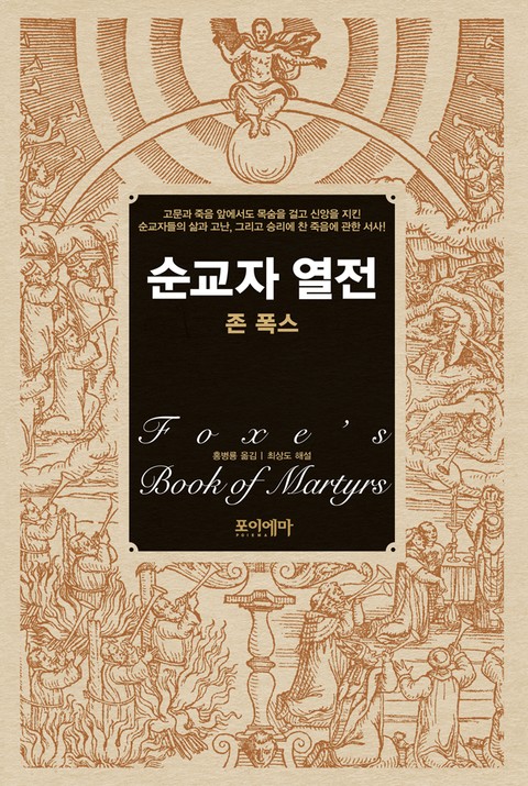 고귀한 주의 백성들이 고난으로 점철된 험한 고개를 넘어 천국으로 향하던 순간을 생생히 되살려낸 기독교 순교의 역사. “결코 사라지지 않을 책이자 위대한 고전! 성경 이후 초기 그리스도인들에게 이처럼 깊은 울림을 준 책은 없었다”라는 찬사가 아깝지 않은 《순교자 열전》을 간결하고 정확한 번역, 세련된 편집, 순교 현장을 포착한 50여 컷의 목판화, 순교 사학자의 권위 있는 해설로 만난다. 단순한 박해의 기록을 넘어선 풍부한 교육 자료이자 이야기의 보고!