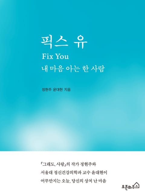 『그래도, 사랑』 의 작가 정현주와 서울대 정신건강의학과 교수 윤대현이 KBS 라디오 <정재형 문희준의 즐거운 생활>의 ‘해열제’ 코너를 통해 나눈 이야기를 모았다. 20년 차 라디오 작가인 정현주가 기획한 ‘해열제’는 윤대현이 출연해 청취자의 고민을 나누고 소진 증후군에 빠진 현대인의 상처를 보듬으며 인기를 얻었다. 『픽스 유』의 화자인 정현주는 방송 내용을 바탕으로 회사생활, 사랑, 친구와 부부와 가족 간의 관계, 자존감, 이별을 아우르는 다양한 소재의 사연과 윤대현의 답변을 소개한다. 현장에서 수많은 사람들의 마음을 치료해온 윤대현의 상담은 현실적이면서도 명쾌하며 유쾌하다. 거기에 정현주는 특유의 담백하고 솔직한 말들로 자신의 아픔, 일, 사랑, 관계에 대한 에세이를 가감 없이 쏟아낸다. 두 사람의 이야기는 결국 ‘사람’에 가 닿고, 이 책은 함께 울어주는 사람들의 기록, 손을 잡아주는 일, 사람이 사람을 안아주는 기적, 온기를 나누는 시간이 되어 독자의 마음을 어루만진다.