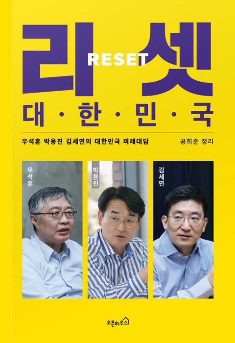 우리 사회 곳곳에 산적한 문제들이 코로나 사태 이후 더욱 악화되며 대한민국을 위기로 몰아넣고 있다. 이에 진보와 보수를 대표하는 젊은 정치인, 더불어민주당 박용진 의원과 국민의힘 김세연 전 의원이 『88만원 세대』의 저자이자 뛰어난 통찰력의 소유자인 경제학자 우석훈 박사와 함께 새로운 정책적 전환점을 모색하기 위한 다각적 대담을 나누었다. 이 세 명의 색다른 조합이 만들어 낸 심도 있는 대담이 『리셋 대한민국』으로 탄생했다.
