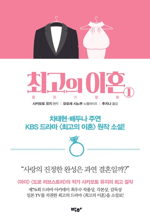 차태현, 배두나 주연의 KBS 월화드라마 《최고의 이혼》의 원작 소설 『최고의 이혼』 제1권. 2013년 일본에서 방영되어 제76회 드라마 아카데미 최우수 작품상, 각본상, 감독상, 남우주연상, 여우조연상까지 그해 일본 TV를 휩쓴 이 작품은 드라마 《마더》, 《도쿄 러브스토리》, 《그래도, 살아간다》의 작가 사카모토 유지의 걸작으로 불린다.
