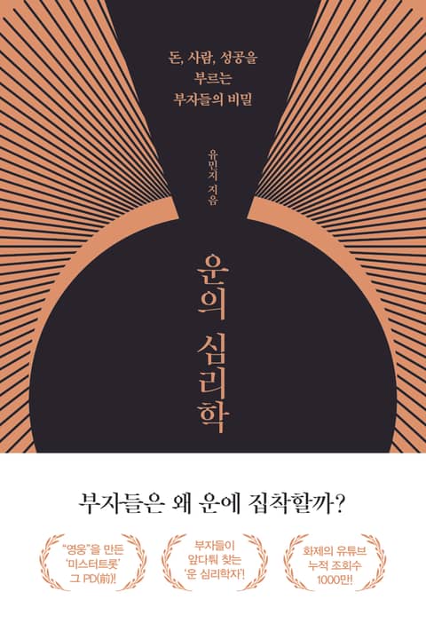 ‘펼치는 순간 행운이 찾아오는 책’, ‘부자들만 아는 은밀한 운테크’, ‘완독한 순간 돈의 불안이 사라졌다’ 등 찬사가 끊이지 않고 있는 이 책은 운이 가진 심리를 꿰뚫어 평생 부자가 되는 놀라운 가르침을 담고 있다. 부자가 될 운명은 이미 정해져 있는 것일까? 왜 하필 역대급 행운은 그들을 향했을까? 초호화 셀럽과 스타, 재벌 및 정·재계 인사들이 대사를 앞둔 순간마다 앞다퉈 찾는 한 사람, 유민지. 그들은 그녀를 만난 뒤 하나같이 자신에게 찾아온 운을 완벽하게 통제하고 지배함으로써 인생 최대의 캐스팅보트를 손에 넣었다.
