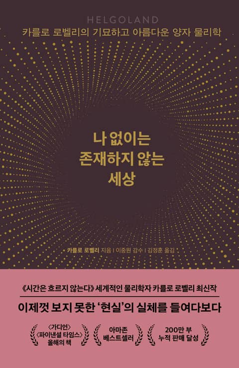 이 책은 북해의 섬 헬골란트에서 스물세 살의 독일 청년이 발견한 ‘양자론’에 대한 아이디어로 시작한다. 그의 이름은 베르너 하이젠베르크. 헬골란트 섬에서 출발한 이야기는 양자론의 탄생과 해석들, 그로 인한 혼란 그리고 오직 ‘상호작용’으로만 이루어진 세계의 실체, 양자론의 ‘관계론적’ 해석에까지 이른다.